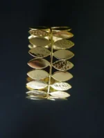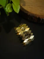 Our jewellery is crafted from high-quality brass and plated with 22kt gold, offering a luxurious finish with durable anti-tarnish and waterproof properties.
