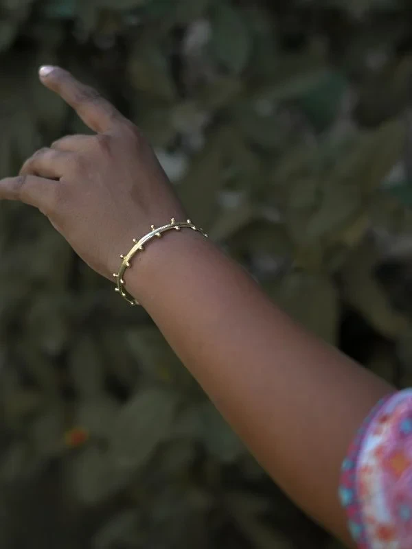 - Handcrafted brass bracelet with 22kt gold plating.