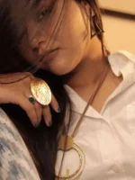 Our jewellery is crafted from high-quality brass and plated with 22kt gold, offering a luxurious finish with durable anti-tarnish and waterproof properties.