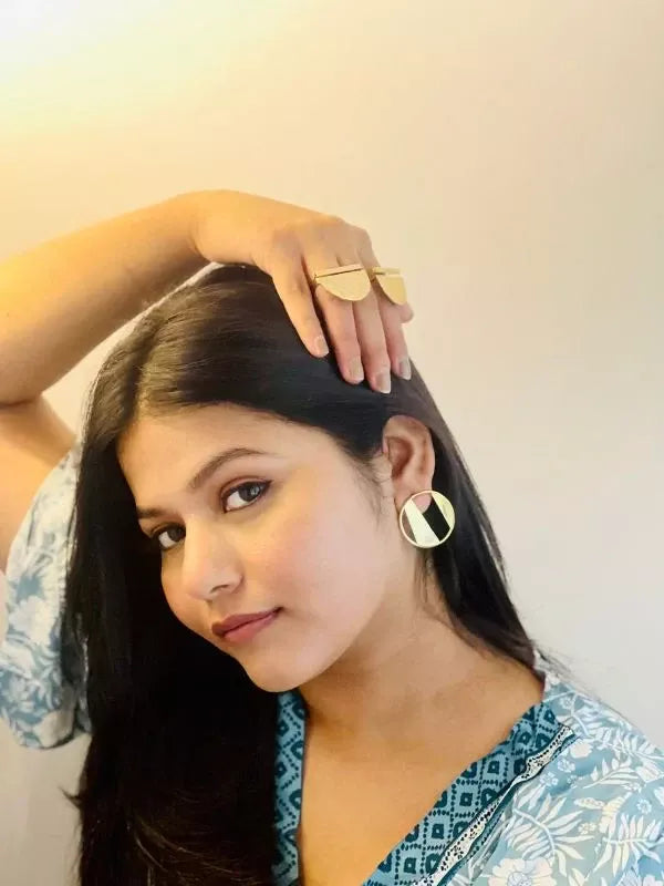 Asymmetry is the new symmetry. The Mismatch 90 Degree earrings play with angles - one design at a perfect right turn from the other. Handcrafted in 22kt gold-plated brass for the woman who lives life at her own angle.