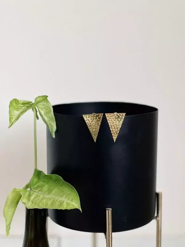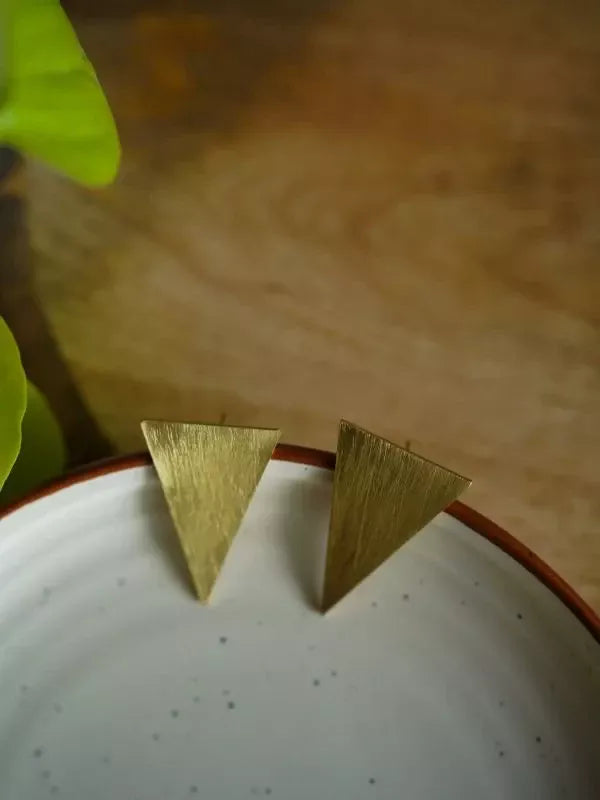 Sharp, geometric, and unapologetically bold. The Triangle Studs bring architectural edge to your everyday look - handcrafted in 22kt gold-plated brass. Small in size, significant in style.